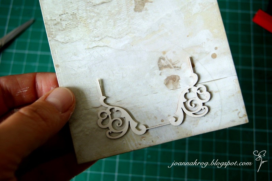Wklejam ją do wnętrza ażurowej części zaczynając od dołu. Dzięki wcześniejszemu dopasowaniu z częścią ażurową, teraz pasuje jak ulał :)